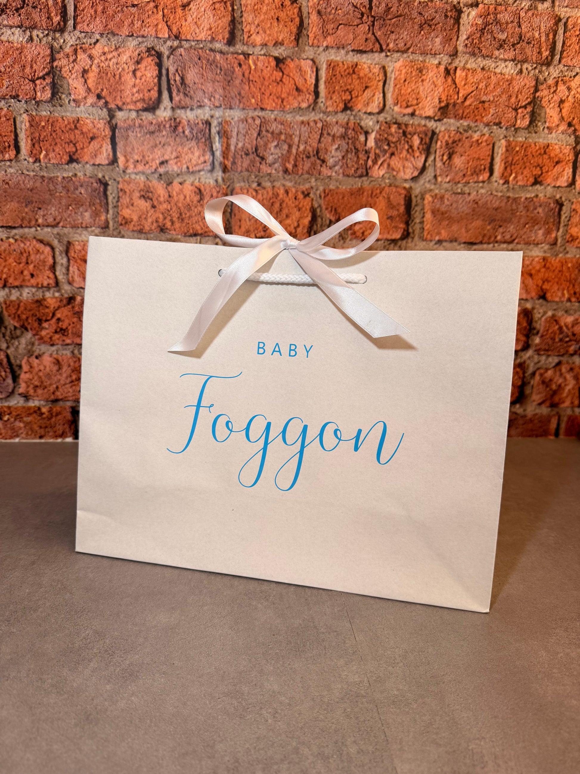 Personalised - BABY Surname - Ribbon Tie Natural Rope Gift Bag