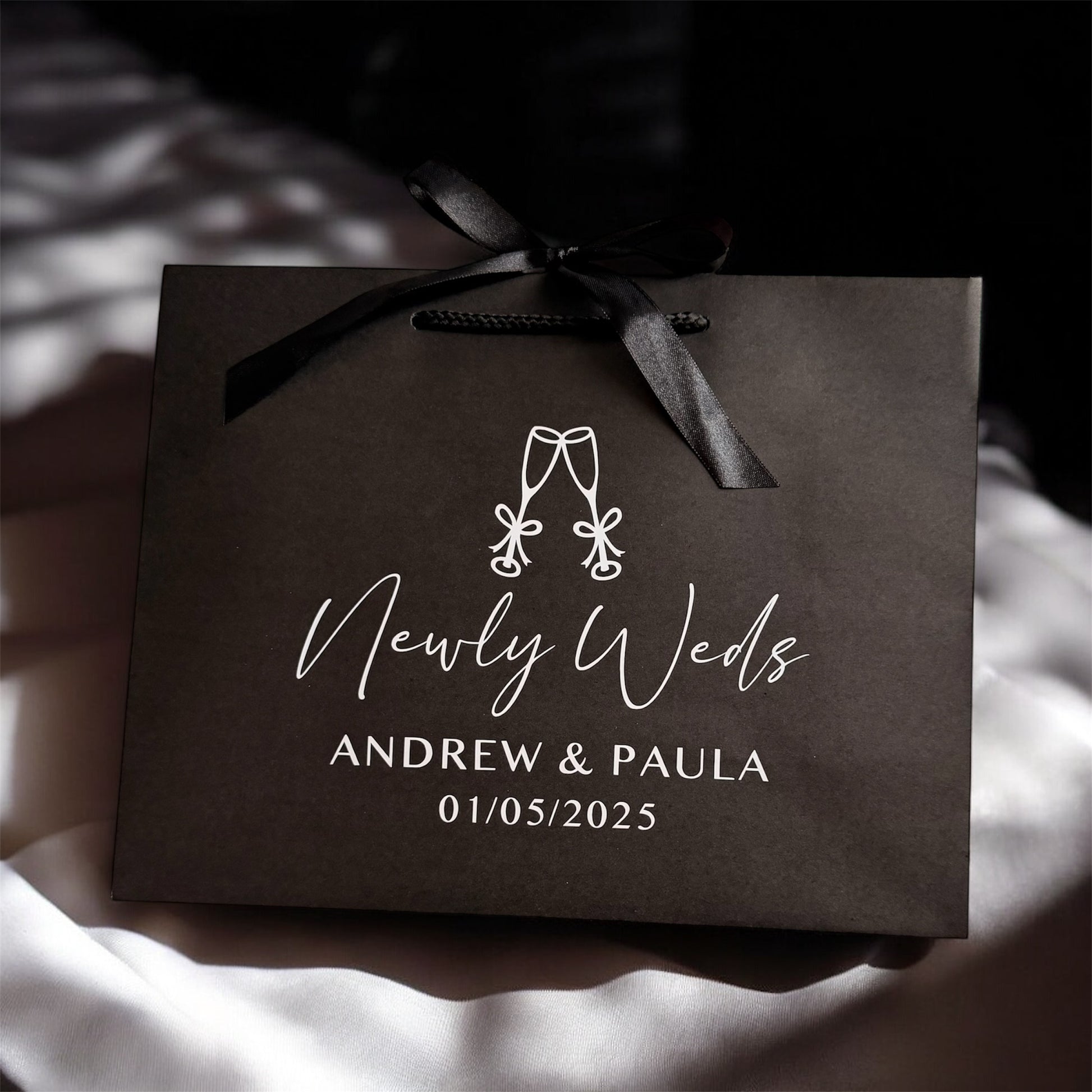 Newly Weds - Ribbon Tie Rope Gift Bag - Wedding, Married, Couple