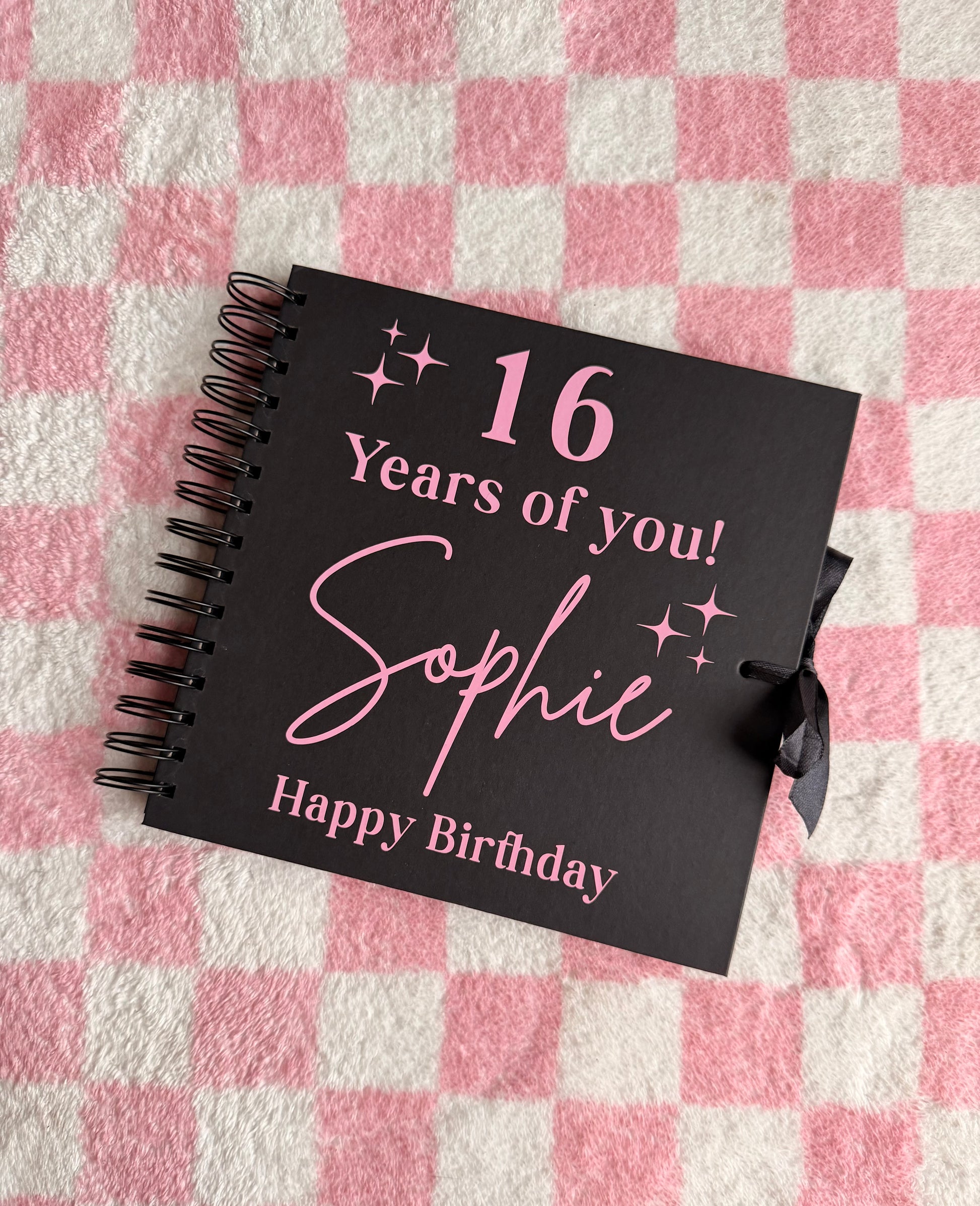 🎉 Personalised Birthday Scrapbook – Name & Age/Text Vinyl Cover 🎉