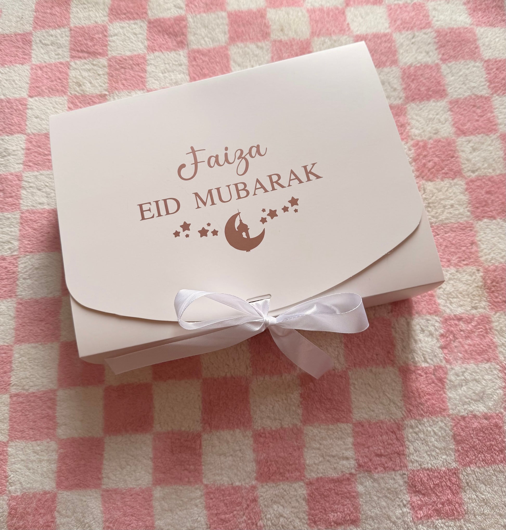 🌙 Personalised Eid Gift Box – Ribbon-Tied Cardboard Box for Eid Presents 🌙