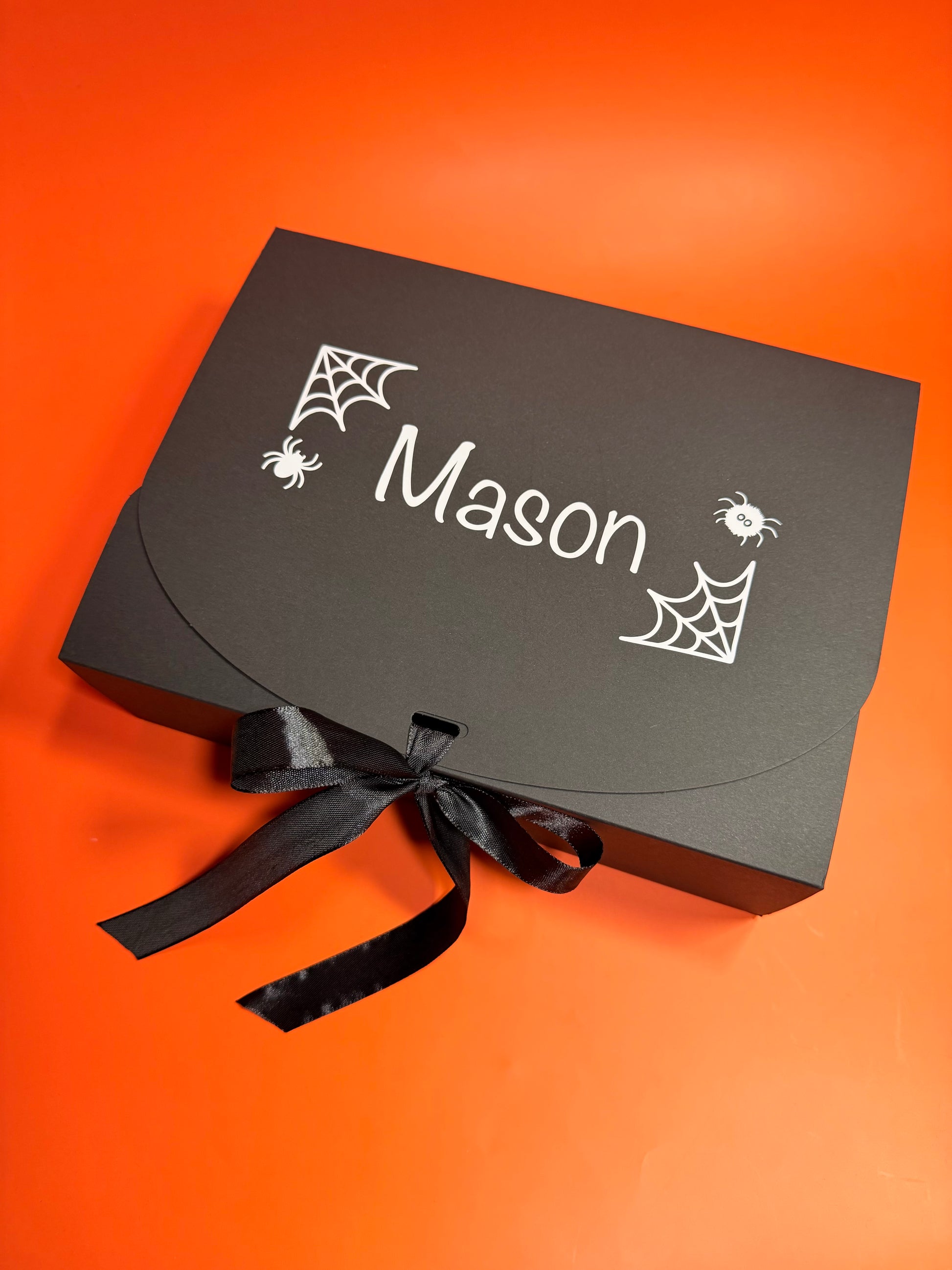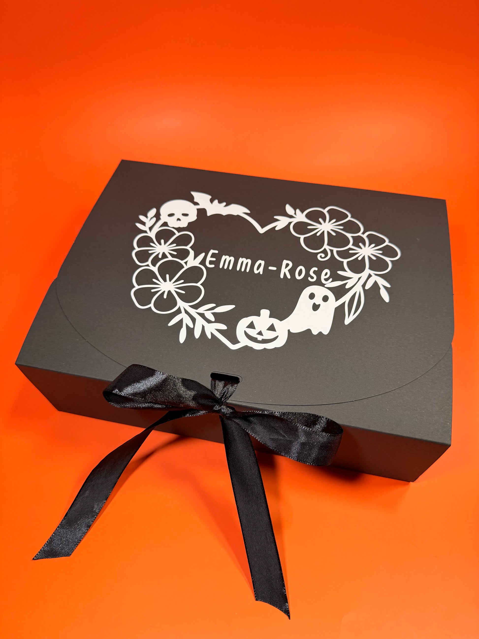Give your spooky-season gifts a magical touch with this personalised ribbon-tied Halloween gift box! Perfect for trick-or-treat surprises, party favours, sweets, spooky hampers, or themed presents for kids and adults alike.