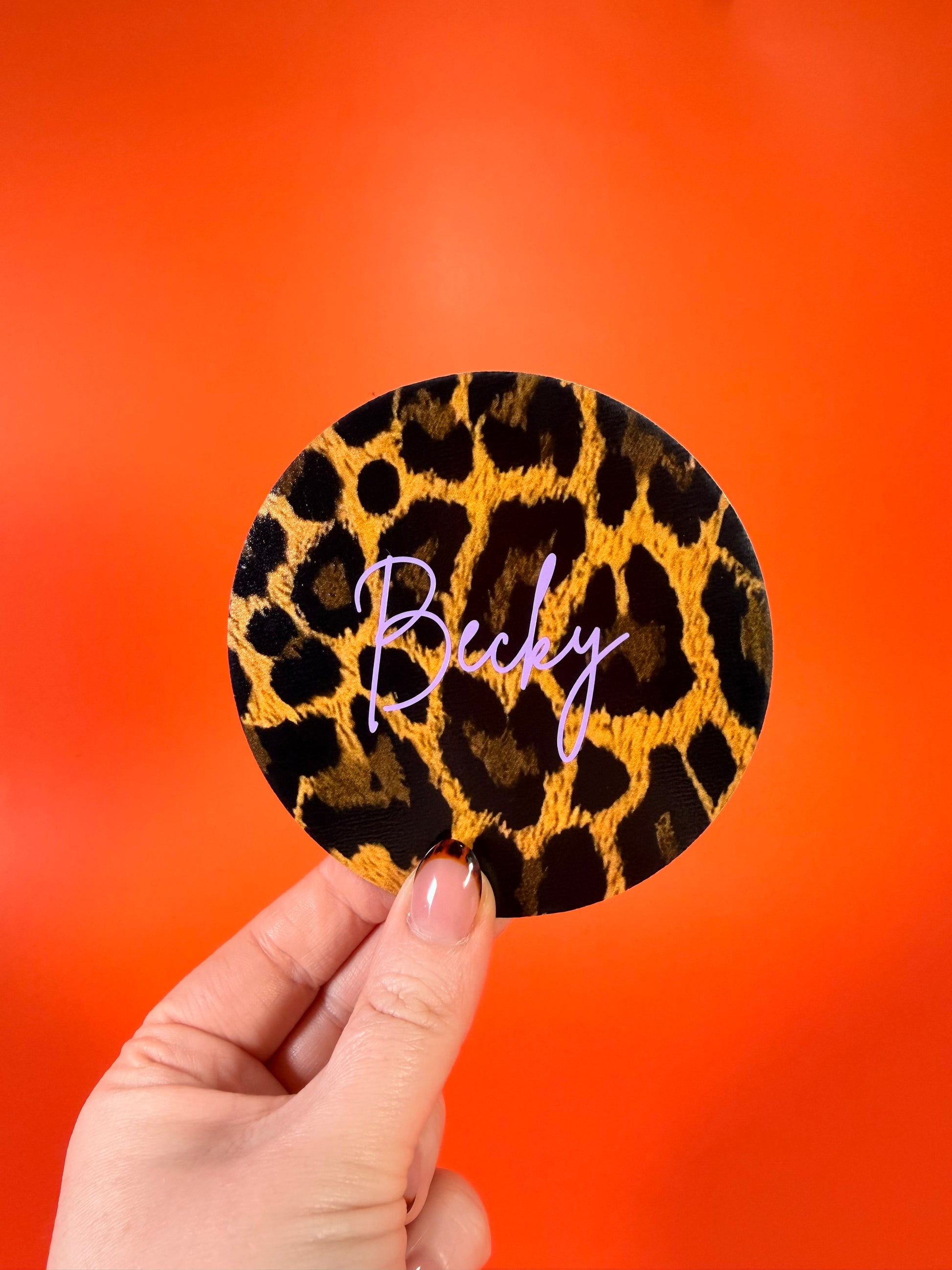 Personalised Leopard Print Coasters – Custom Name Drink Coasters, Animal Print Home Décor, Gift for Her, Housewarming Gift, Stylish Tableware, Table Place Names.