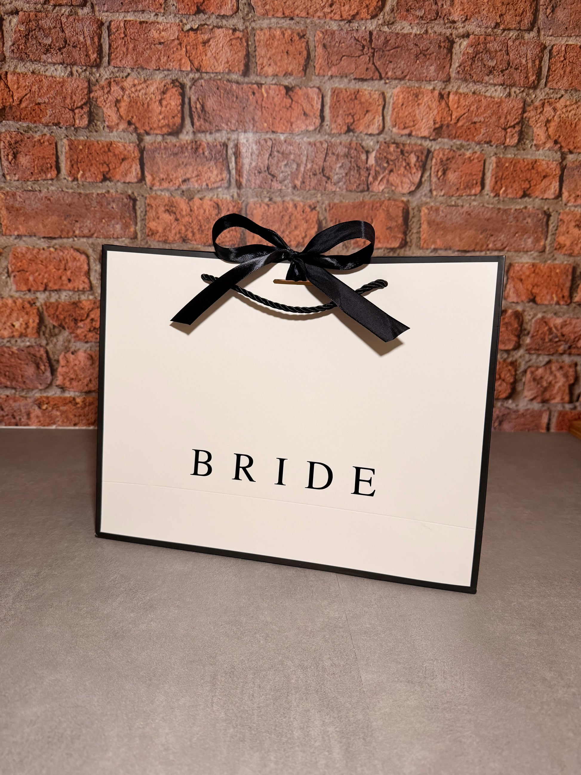 Personalised Custom - Ribbon Tie Gift Bags - White with Black Trim & Ribbon